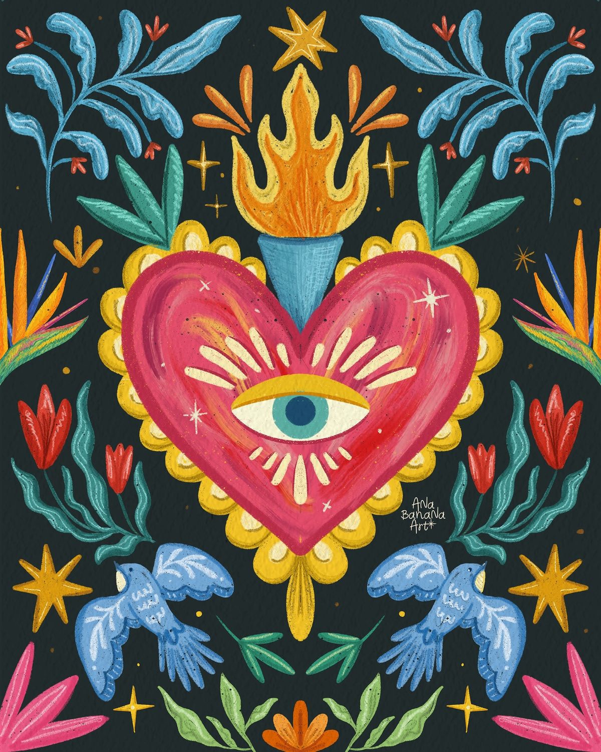 Un coeur sacré, des couleurs vibrantes et du détail, On mixe peinture & Posca pour un rendu intense et graphique.